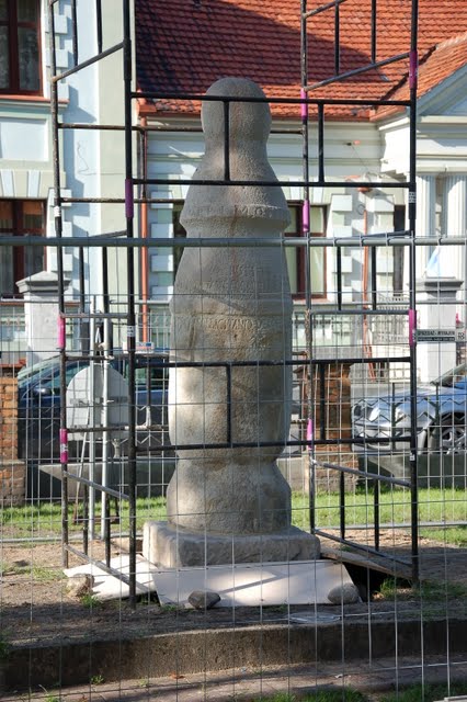 o krzyż kamienny, wmurowany w północnej skarpie, wykonany z piaskowca, jeden z kamieni milowych na drodze Kalisz – Kruszwica.